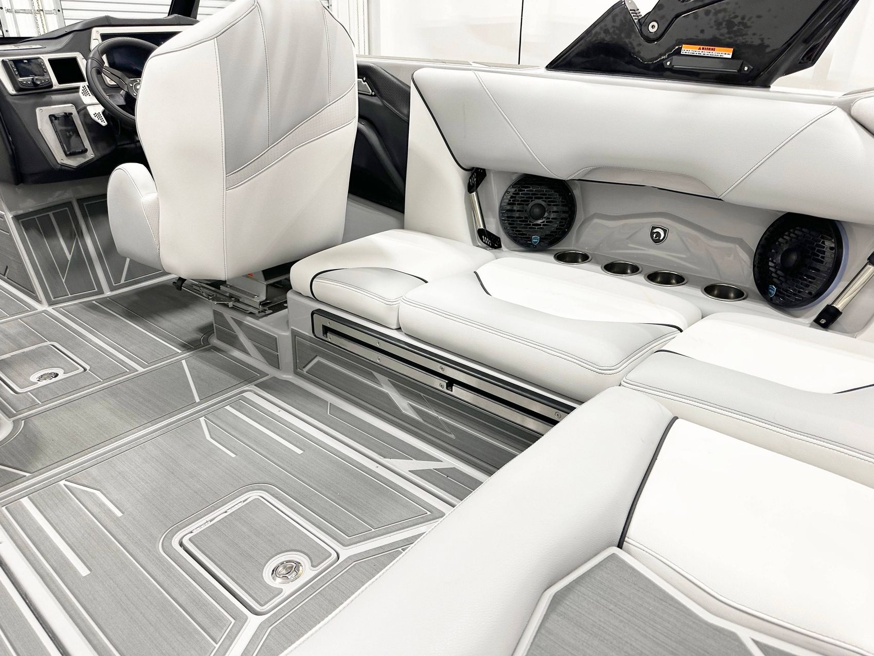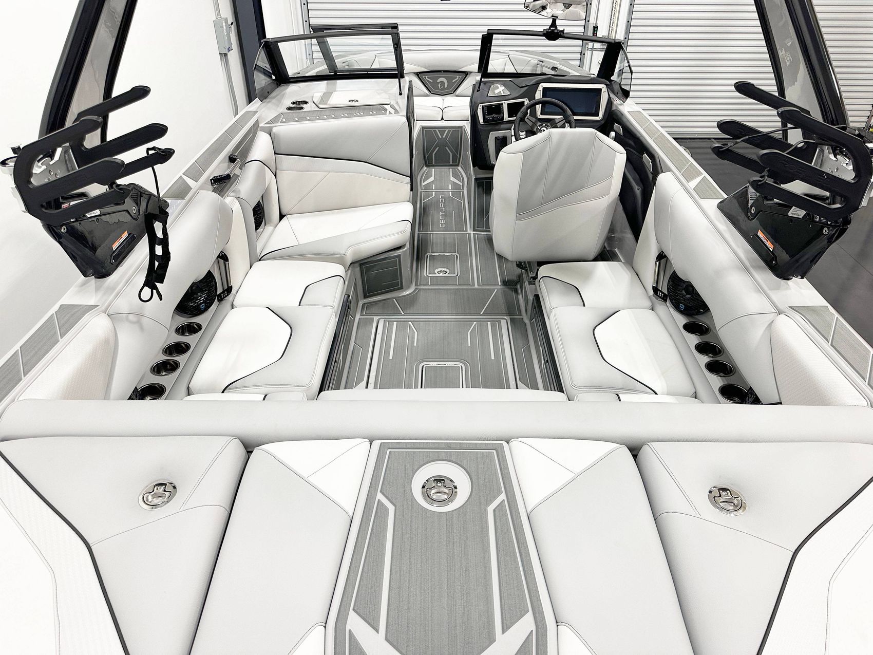 2025 Centurion Nv233 CALL OR TEXT 407-425-2628 The Nv233 takes it up a notch from the entry Centurion Nv213, with two more feet of length, room for two more passengers and the exotic sports car look that says high performance even when docked. It comes with up to 5000 pounds of available ballast, more than half of which can be filled in 90 seconds with available RAMFILL2. This isn’t a stripped-down version of a more expensive Centurion or an older design dressed-up new, the Nv233 is designed from the water up to deliver precisely what you need to get the most out of your water sports experience. The Nv233 offers world championship caliber surf, with the ability to propel you to your own best performance. Unique to the Nv Series design is the unobstructed GatorStepped space between the tower and the dash that facilitates easy communication directly with a rider – perfect for coaching. An abundance of built-in quality features means the Nv233 comes with everything you need to get on the water and enjoy a great ride from day one, but that doesn’t mean you can’t option up as well. This 23-foot Centurion leaves nothing to be desired except more time on the water.