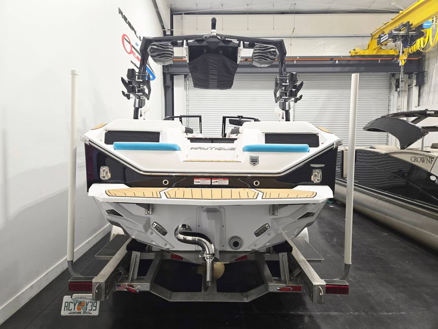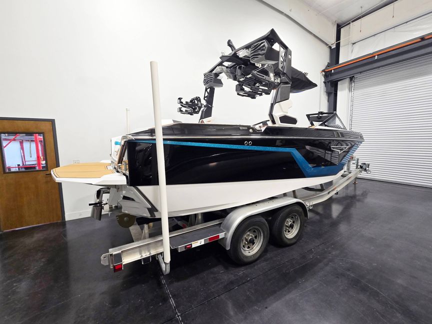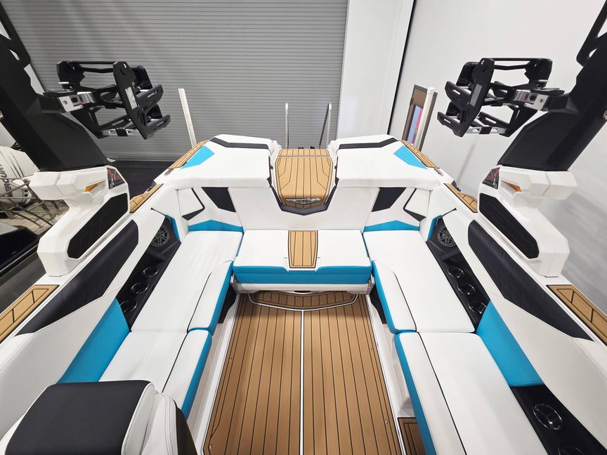 The Nautique S21 delivers premium wake performance in a versatile 21.5-ft package, powered for up to 355 HP and designed for serious watersports and luxury on the water. This 2026 model features a bimini top with tower mount, actuated tower, JL M6 speakers with premium M3 Series audio, underwater lights, wireless charging, and a heated tandem steering wheel for ultimate comfort. Finished in Mystic White, Jet Black, and Reef Blue metal flake, it also includes Nautique strapless board racks, sliding reversible stern seat, walk-through air dam, mooring cover, and integrated docking lights. With advanced helm controls, Maps US-Canada navigation, and seating for up to 14 passengers, the S21 blends cutting-edge technology, style, and world-class wake performance for unforgettable days on the water.
