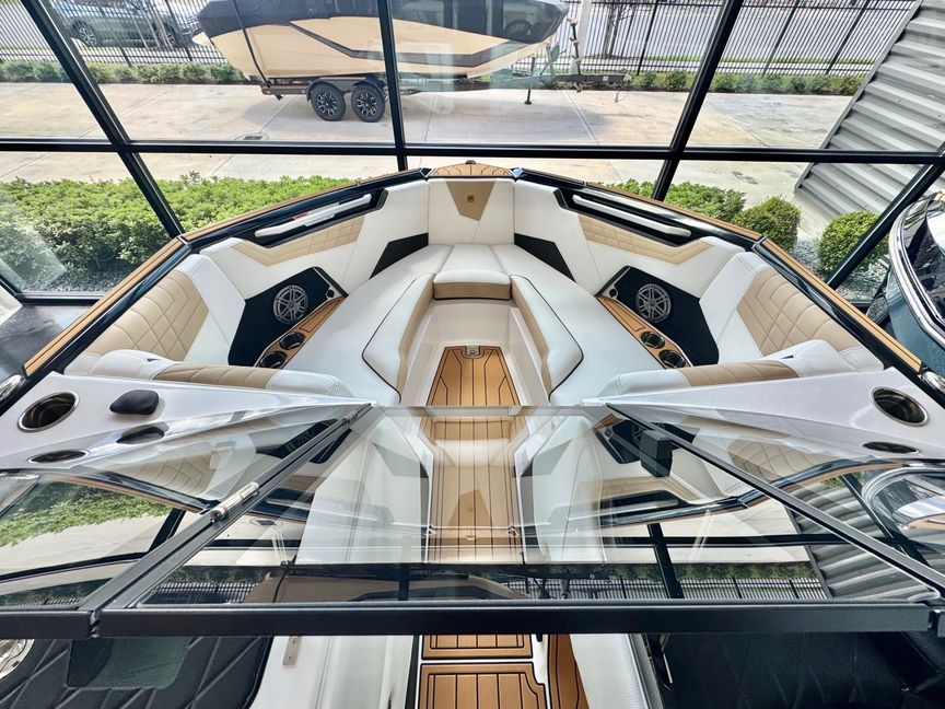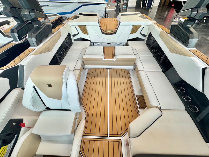Delivering unrelenting performance unlike anything in its class, the Super Air Nautique S23 is an ultra-modern wake boat with the refined look of a traditional bow Nautique. Configurable in a multitude of ways, the S23 has various tower and engine options to accommodate every rider’s needs. A great performer for all abilities, the S23 provides the perfect platform to advance your riding whether you’re wakeboarding or wakesurfing. At 23-feet, the S23 boldly takes you and your family into the next generation of style and performance.