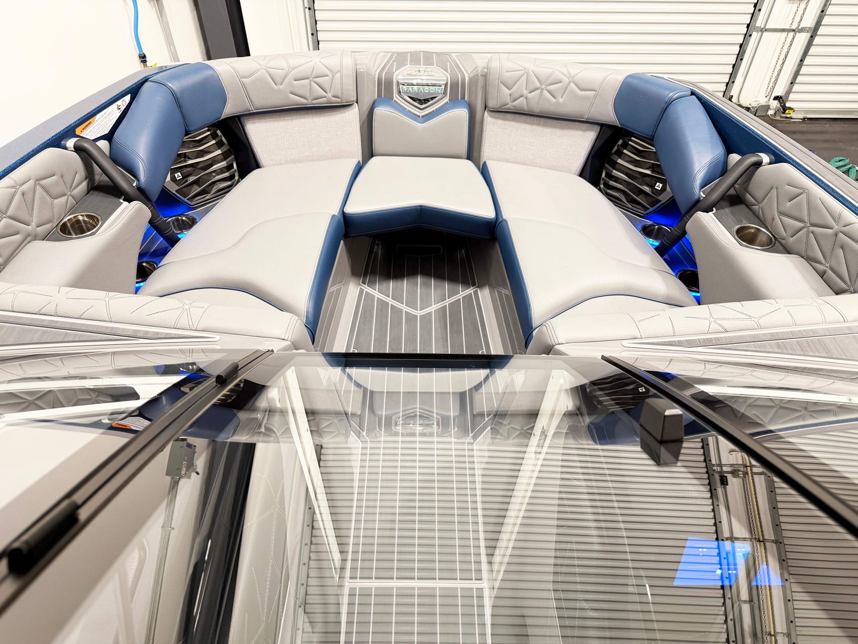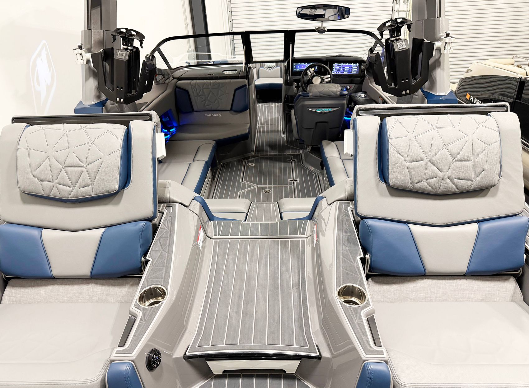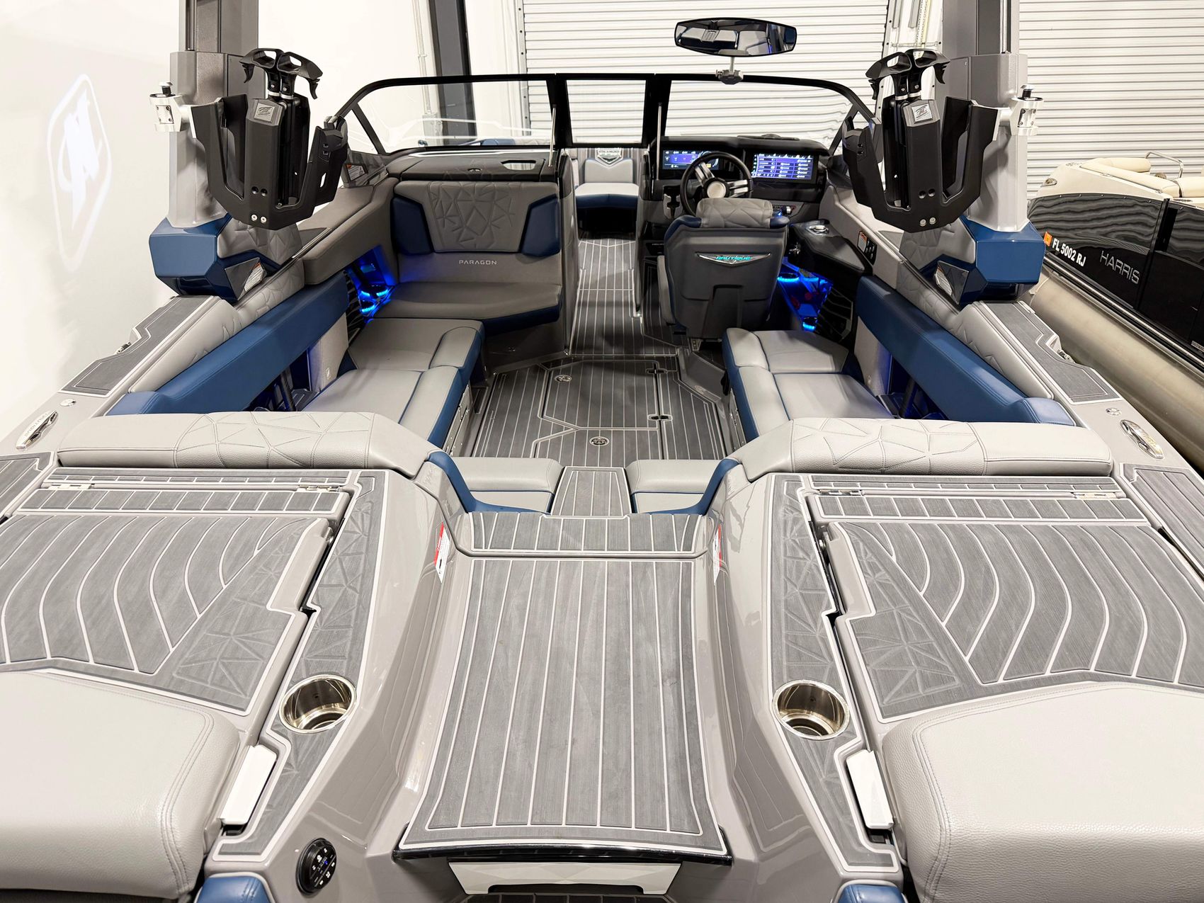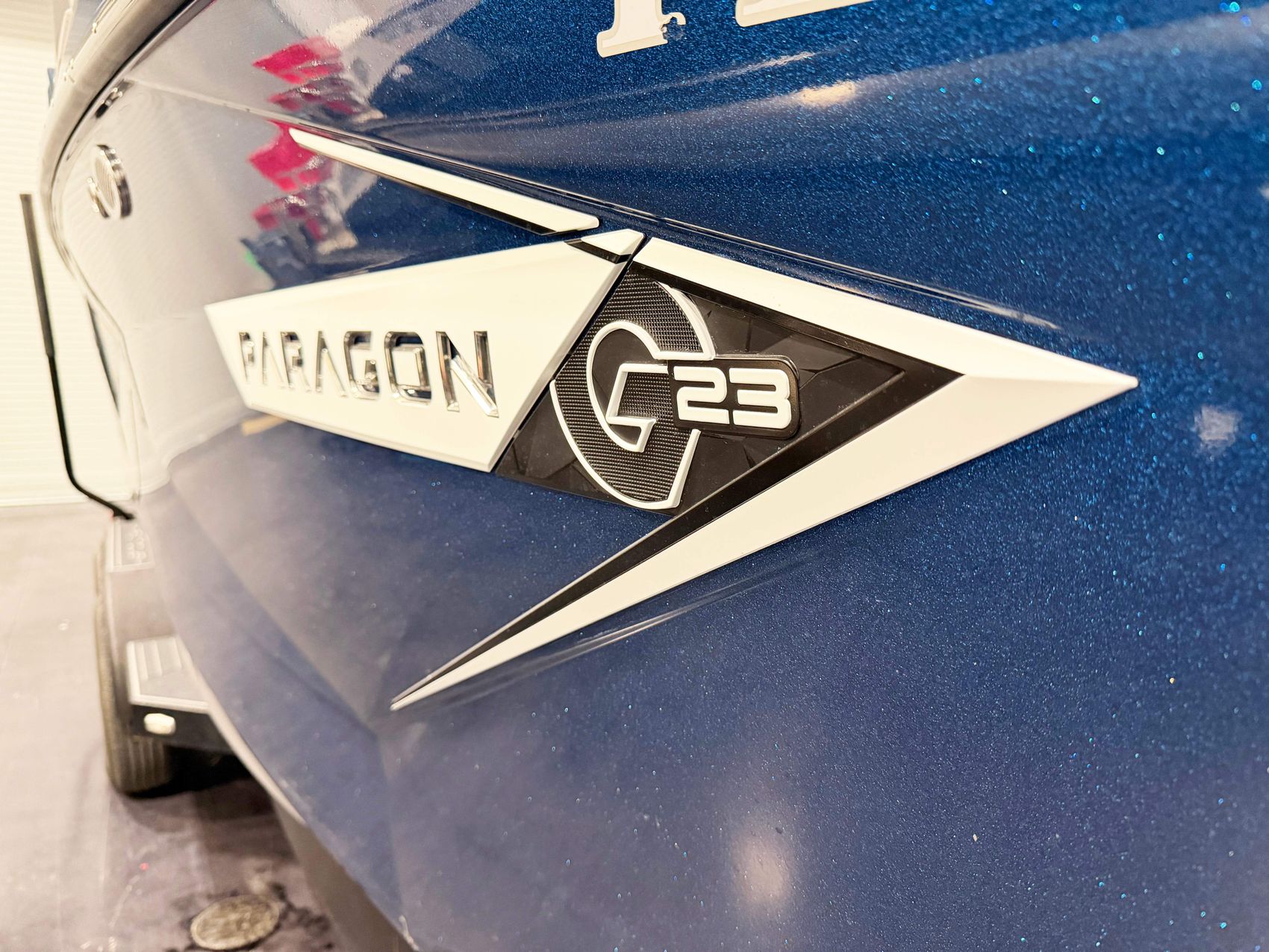 This 2022 G23 Paragon is in excellent condition with only 41 hours. It is powered by the very reliable PCM ZZ8 with 600HP. Price does not include trailer but we have trailers available if needed. Notable options and features include Admiral blue metal flake and tungsten grey gelcoat, Integrated steering assist, Heater, Extended sunshade, Fender pro, JL Audio Wake Sub, and Mapping.