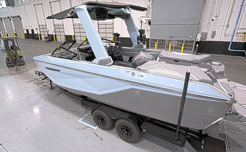This used 2025 Nautique G23 is a top-tier wake boat powered by a ZZ8 Supercharged 630HP engine with just 250 hours, delivering unmatched performance for serious riders. Fully loaded with premium features, it includes a telescopic tower with prep kit, supplemental ballast system for pro-level wakes, and Surf Select for effortless wave control. Comfort and convenience shine with heated seats, heater, actuated helm seat, retractable arm rests, and a bow filler cushion, while tech upgrades like MAPS, integrated steering assist, wireless chargers, and a WAVEFRONT stereo system with transom remote elevate every outing. Enjoy added style and safety with enhanced courtesy lighting, underwater lights, auto fire extinguisher, and GoPro mounts to capture every moment. Finished with practical touches including platform ladder, battery charger, tower-down boat cover, and platform cover, this G23 is fully equipped and ready to hit the water in luxury and performance. Trailer not included.